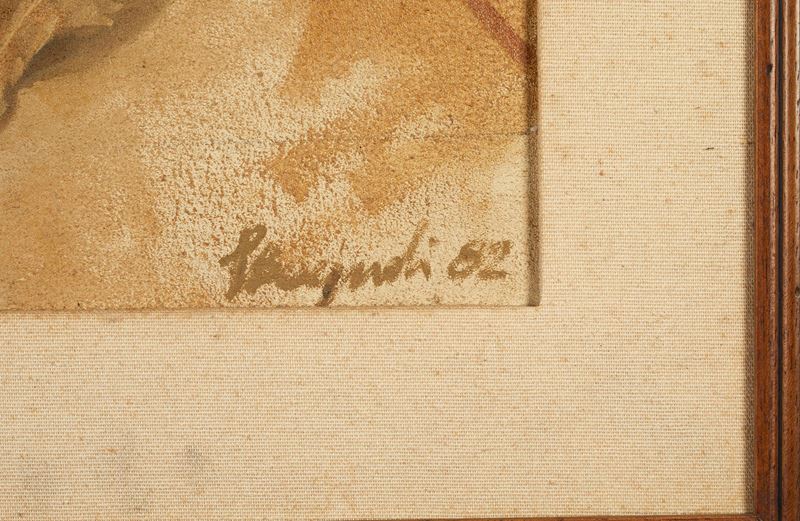 LIDIA BAGNOLI (Bologna 1952) “Drappo rosso”, 1982. Olio su cartone. Cm 38x49. Opera firmata e datata in basso a destra Bagnoli 82.