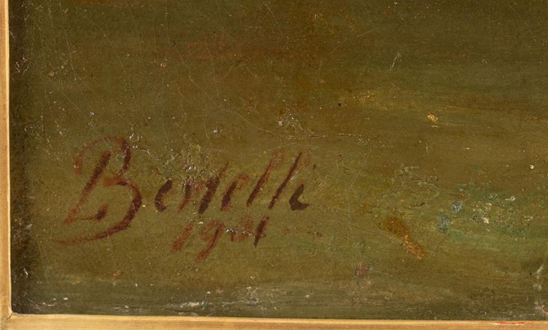 LUIGI BERTELLI (San Lazzaro di Savena 1833 - Bologna 1916) "Il lago", 1901. Olio su tela. Cm 62x87. Opera firmata e datata in basso a sinistra Bertelli 1901.