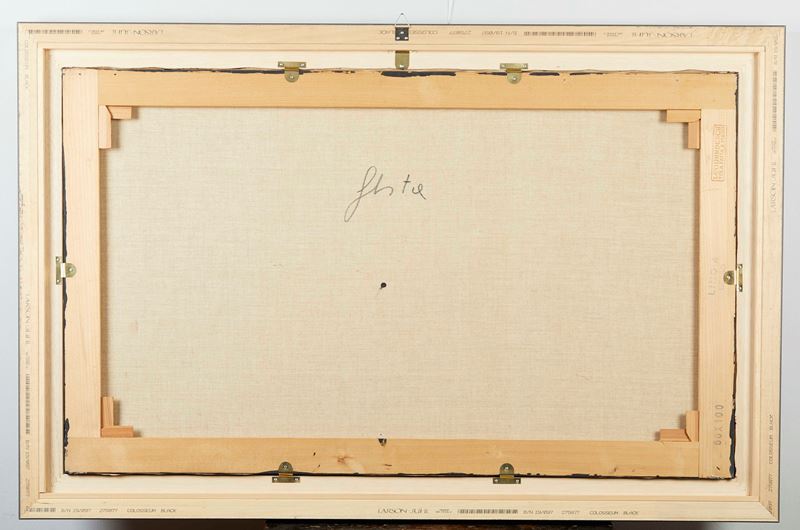 TANO FESTA (Roma 1938 - Roma 1988) "Senza titolo", 1985-86. Acrilico su tela. Cm 60x100. Opera firmata al retro Festa. Opera accompagnata da autentica dell'Archivio Soligo con numero di archivio 80-60/T 201. Opera accompagnata da certificato di autenticità della Galleria d'Arte Soligo in data 10/10/1994.