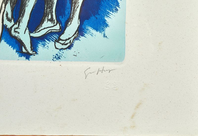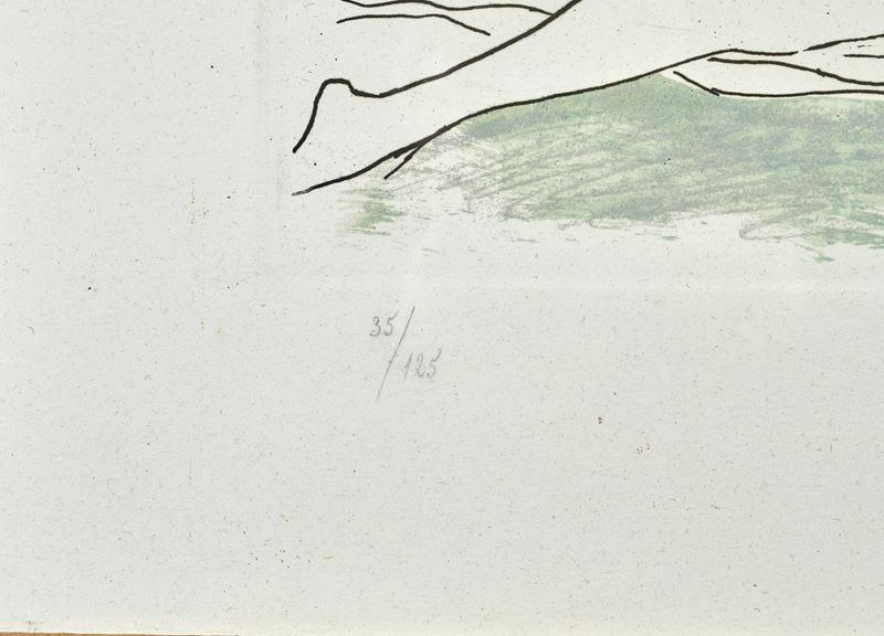 RENATO GUTTUSO (Bagheria 1911 - Roma 1987) "Solim". Acquaforte e acquatinta a colori su carta. Cm foglio: 65x85; lastra: 44,5x64. Opera firmata in basso a destra Guttuso. Reca in basso a destra timbro Stampatore dei Greci, Roma. Reca in basso a sinistra numeri di tiratura 35/125.