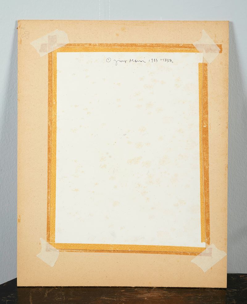 PIERO MANAI (Bologna 1951 - 1988) “Testa”, 1984. Tecnica mista su carta. Cm: 29x20. Opera firmata, datata e intitolata al retro Piero Manai, testa, 1984. Opera acquistata dall'attuale proprietà direttamente dal maestro.