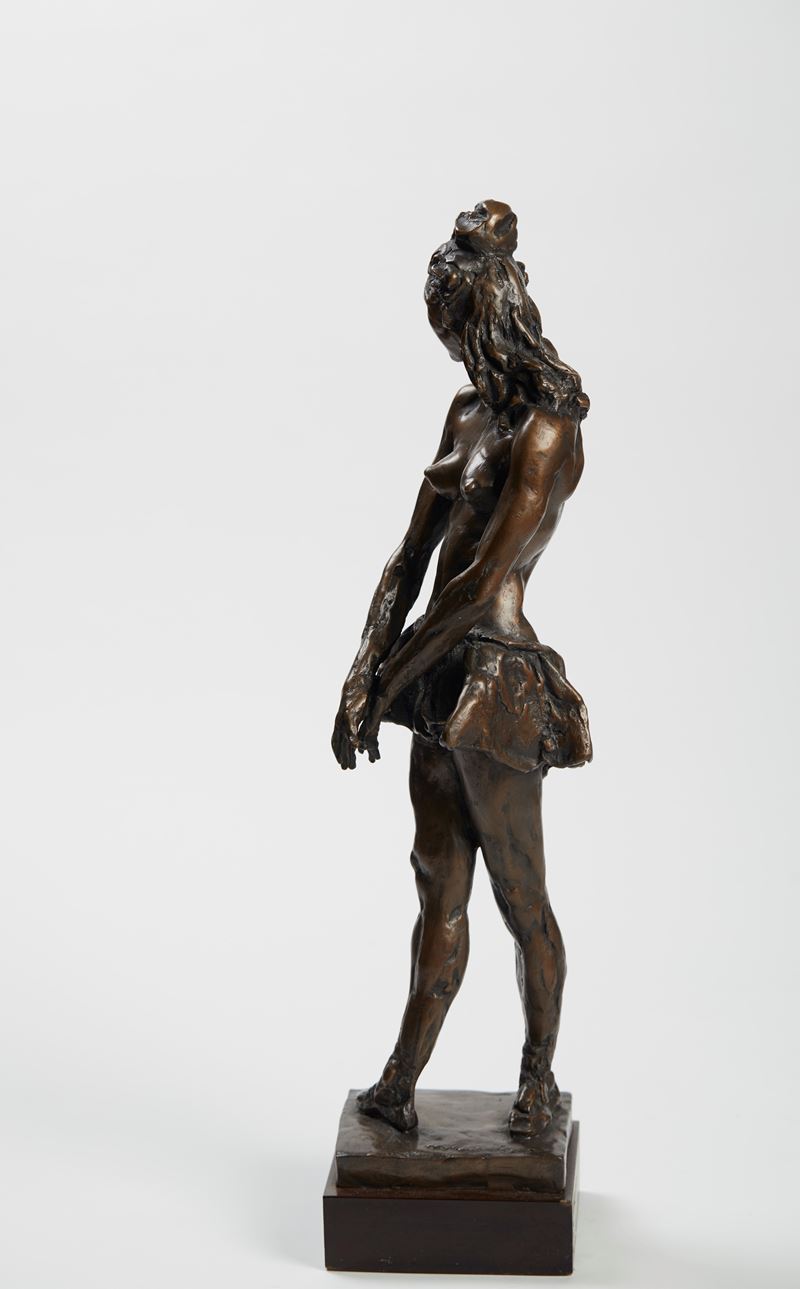 FRANCESCO MESSINA (Linguaglossa 1900 - Milano 1995) “Danzatrice”. Scultura in bronzo raffigurante ballerina. Cm 52x13x12. Opera firmata alla base Messina. Reca alla base numeri di tiratura p.a. Reca alla base marchio Venturi Arte.