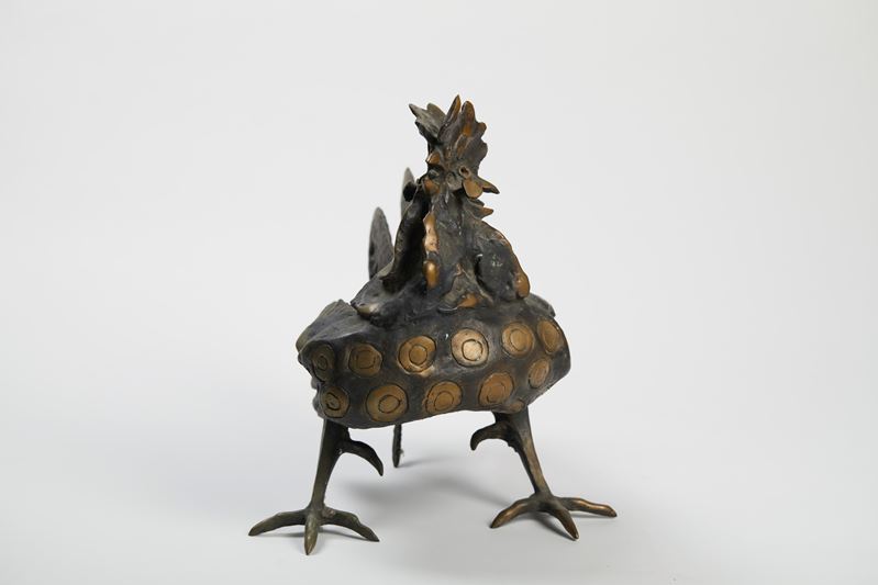 LUCIANO MINGUZZI (Bologna 1911 - Milano 2004) “Gallo”. Scultura in bronzo a cera persa. Cm 39x33x38. Opera firmata sotto la base M. Minguzzi. Reca numero di tiratura 144/1500.