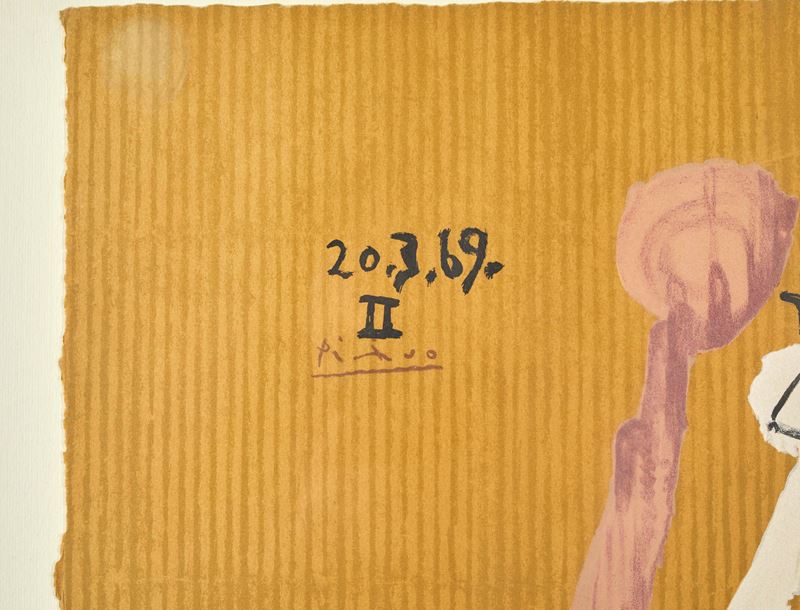 PABLO PICASSO (Malaga 1881 – Mougins 1973) “D’Apres”, 1969. Litografia a colori su carta. Reca numeri di tiratura in basso a destra 173/250. Al retro reca timbro della Galleria d'Arte il Castello, Carpi.