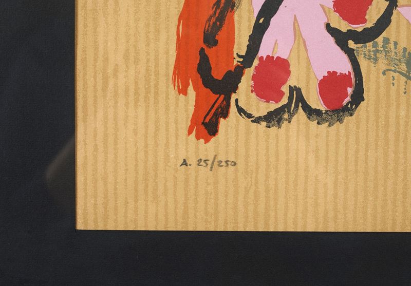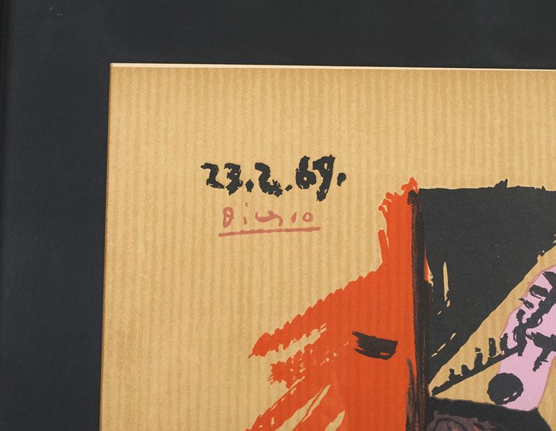 PABLO PICASSO (Malaga 1881 - Mougins 1973) "Portrait imaginaire", 1969. Litografia a colorí su carta. Cm lastra: 55x40. Esemplare privo di firma. Reca numeri di tiratura in basso a sinistra A 25/250 (A - esemplare realizzato per gli Stati Uniti). Al retro reca etichetta AEditions Cercle d'art, Paris, 1970.