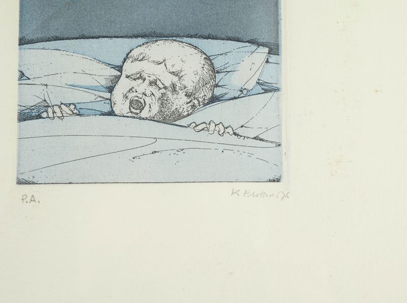 KARL PLATTNER (Malles Venosta 1919 - Milano 1986) “Cinzia”. Acquaforte su carta. Cm 10x10. Opera firmata in basso a destra K. Plattern. Reca numeri di tiratura in basso a sinistra p.a. Opera stampata nel 1976. Al retro reca etichetta di Torcular, Milano.