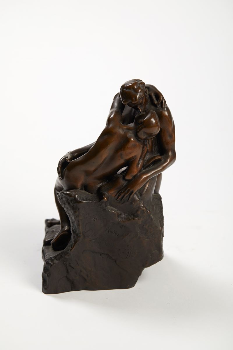AUGUSTE RODIN (Parigi 1840 - Meudon 1917) "Il bacio", 1986. Scultura in bronzo. Produzione postuma. Cm 24,5x15x16. Opera firmata a lato Rodin. Reca marchio con tiratura 750 esemplari e data 1986.
