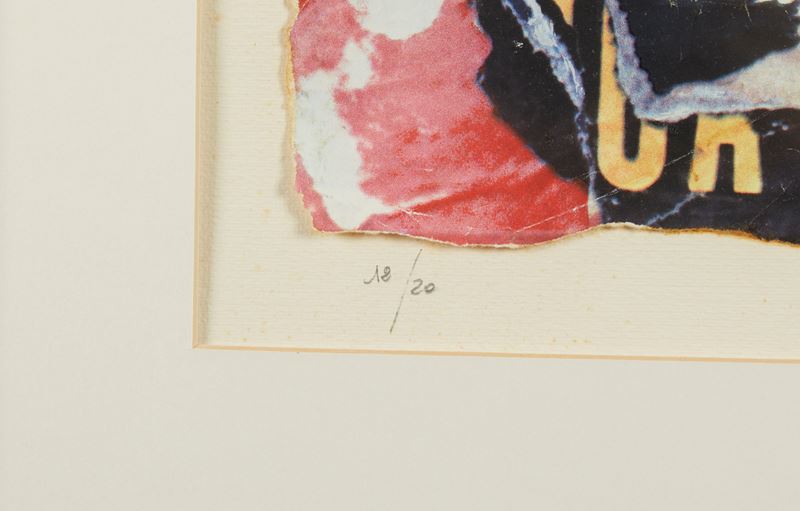 MIMMO ROTELLA (Catanzaro 1918 - Milano 2006) "Senza titolo", 1980. Litografia a decollage. Cm 50x46. Opera firmata in basso a destra Rotella. Reca numeri di tiratura in basso a sinistra 18/20.