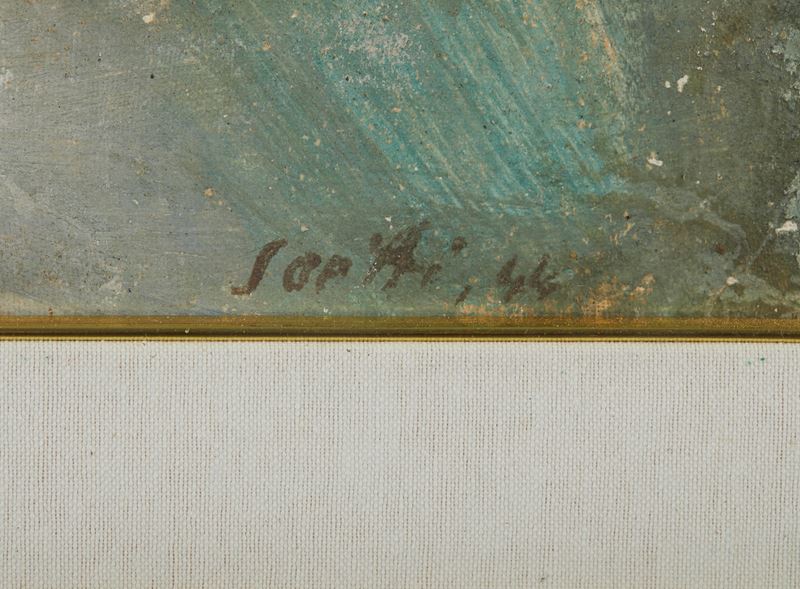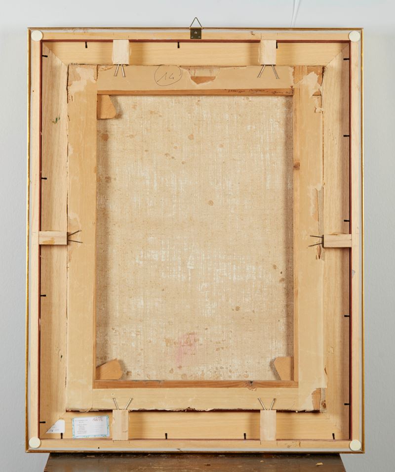 BRUNO SAETTI (Bologna 1902 - Bologna 1984) "Paesaggio dell'Accademia", 1944. Affresco su tela. Cm 62x46. Opera firmata e datata in basso a destra Saetti '44. Opera accompagna da autentica dell'archivio Bruno Saetti con numero 3357.