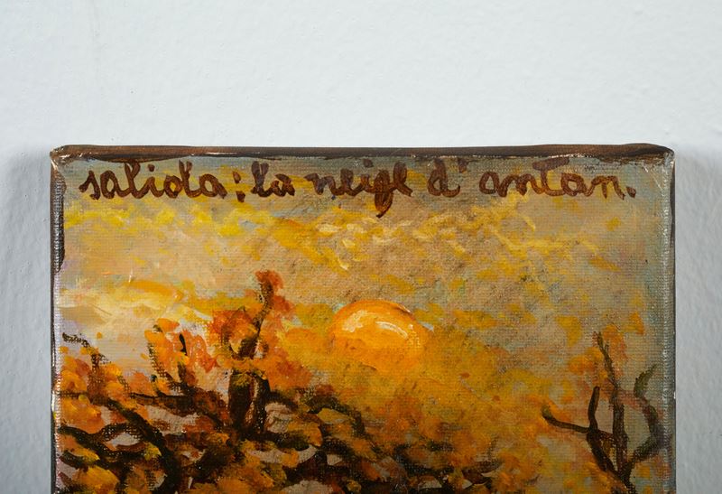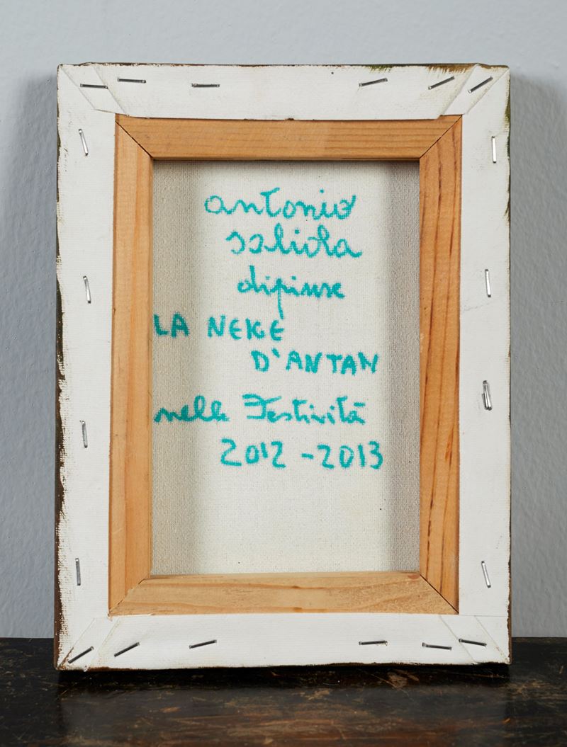 ANTONIO SALIOLA (Bologna 1939 - Bologna 2024) "La neige d'antan", 2012/2013. Olio su tela. Cm 24x18. Opera firmata e intitolata in alto Saliola: la neige d'antan. Al retro opera firmata, intitolata e datata Antonio Saliola, La neige d'antan, 2012 - 2013.