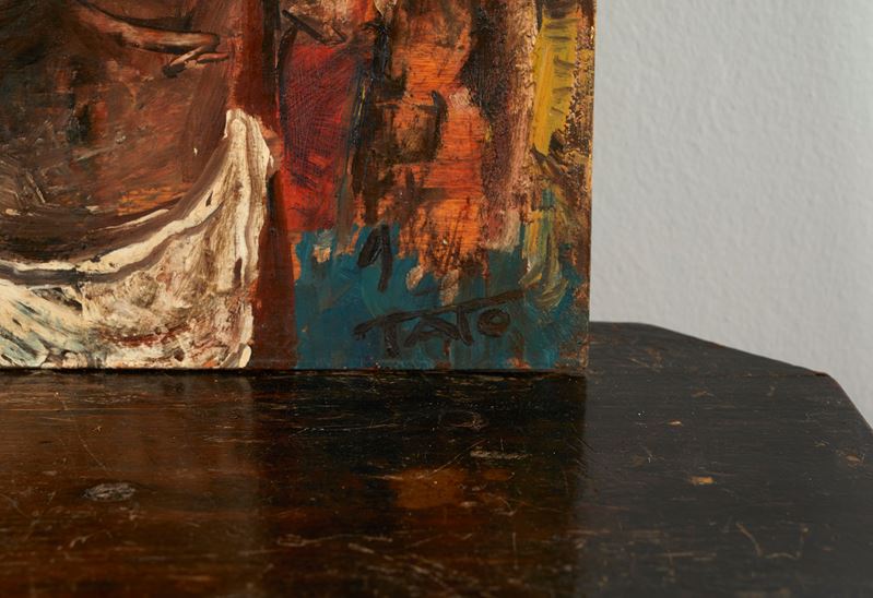GUGLIELMO SANSONI TATO (Bologna 1896 - Roma 1974) “Cristo”. Olio su tavola. Cm 55x33.5. Opera firmata in basso a destra Tato.