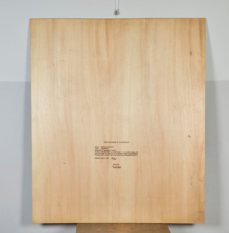 MARIO SCHIFANO (Homs 1934 – Roma 1998) “Crociera”. Serigrafia polimaterica su tavola. Cm 120x100. Opera firmata in basso a destra Schifano. Reca al retro numeri di tiratura HC 17/30. Al retro reca certificato di autenticità ad opera delle Edizioni d’Arte Torcular con timbro Torcular.