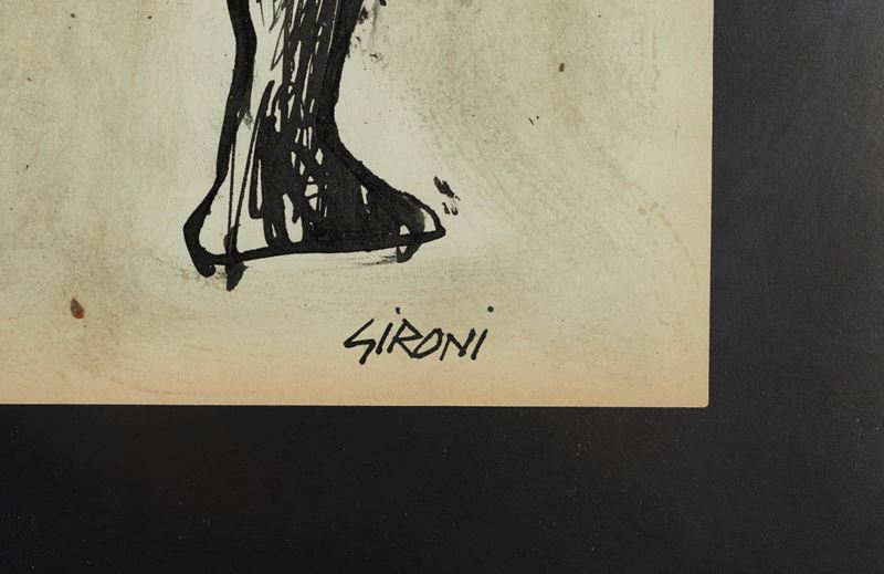 MARIO SIRONI (Sassari 1885 - Milano 1961) “Figura”. China su carta. Cm 26,5x21. Opera firmata in basso a destra Sironi. Opera accompagnata da fattura di acquisto della Galleria Genova, Genova.