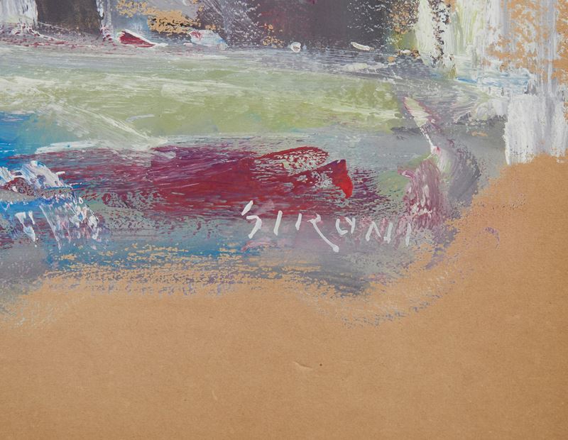 MARIO SIRONI (Sassari 1885 - Milano 1961) “Senza titolo”. Tempera su carta applicata su tela. Cm 21x29,5. Opera firmata in basso a destra Sironi.