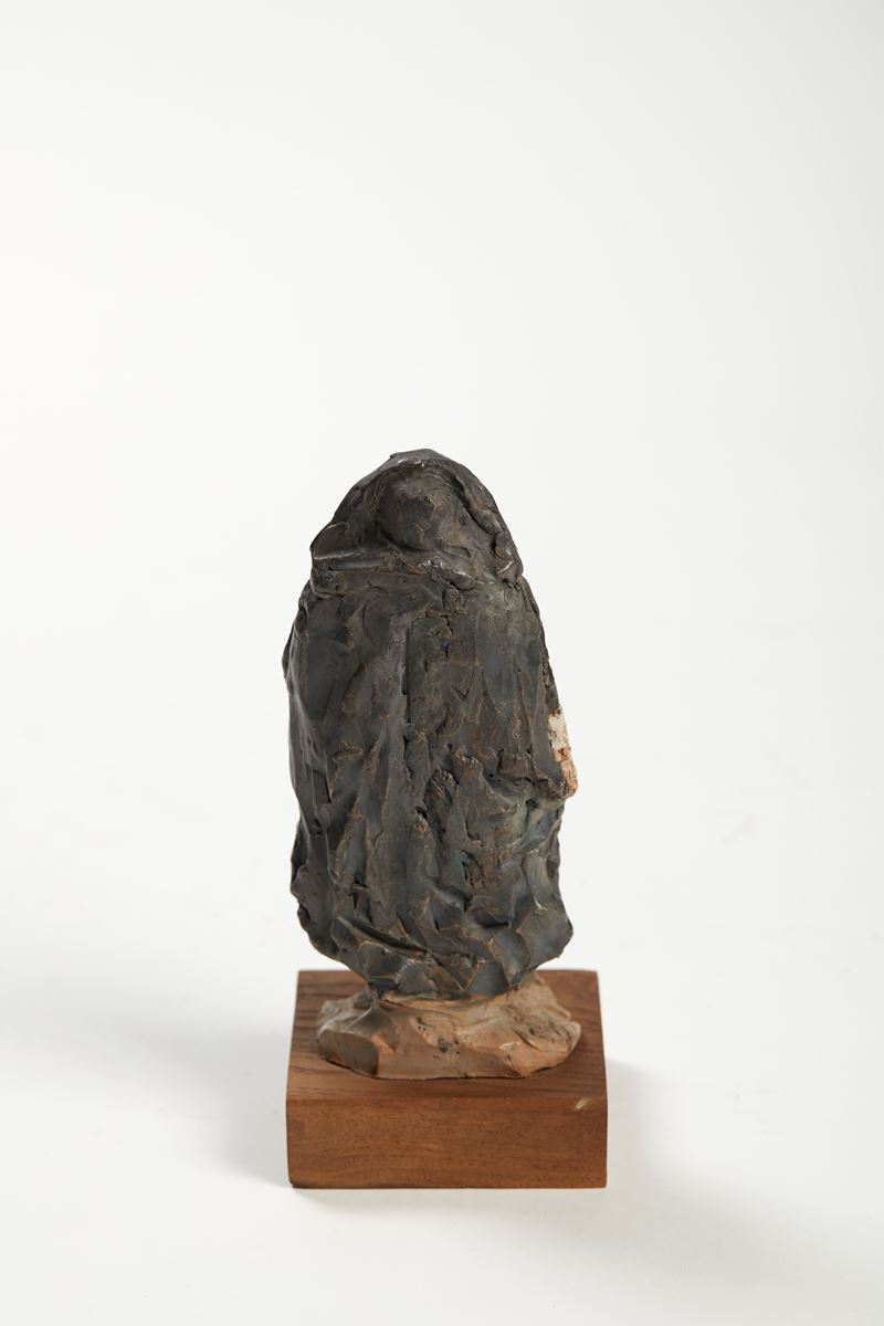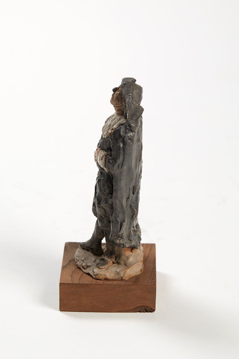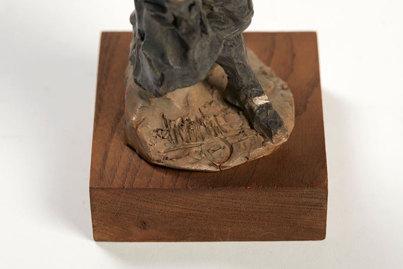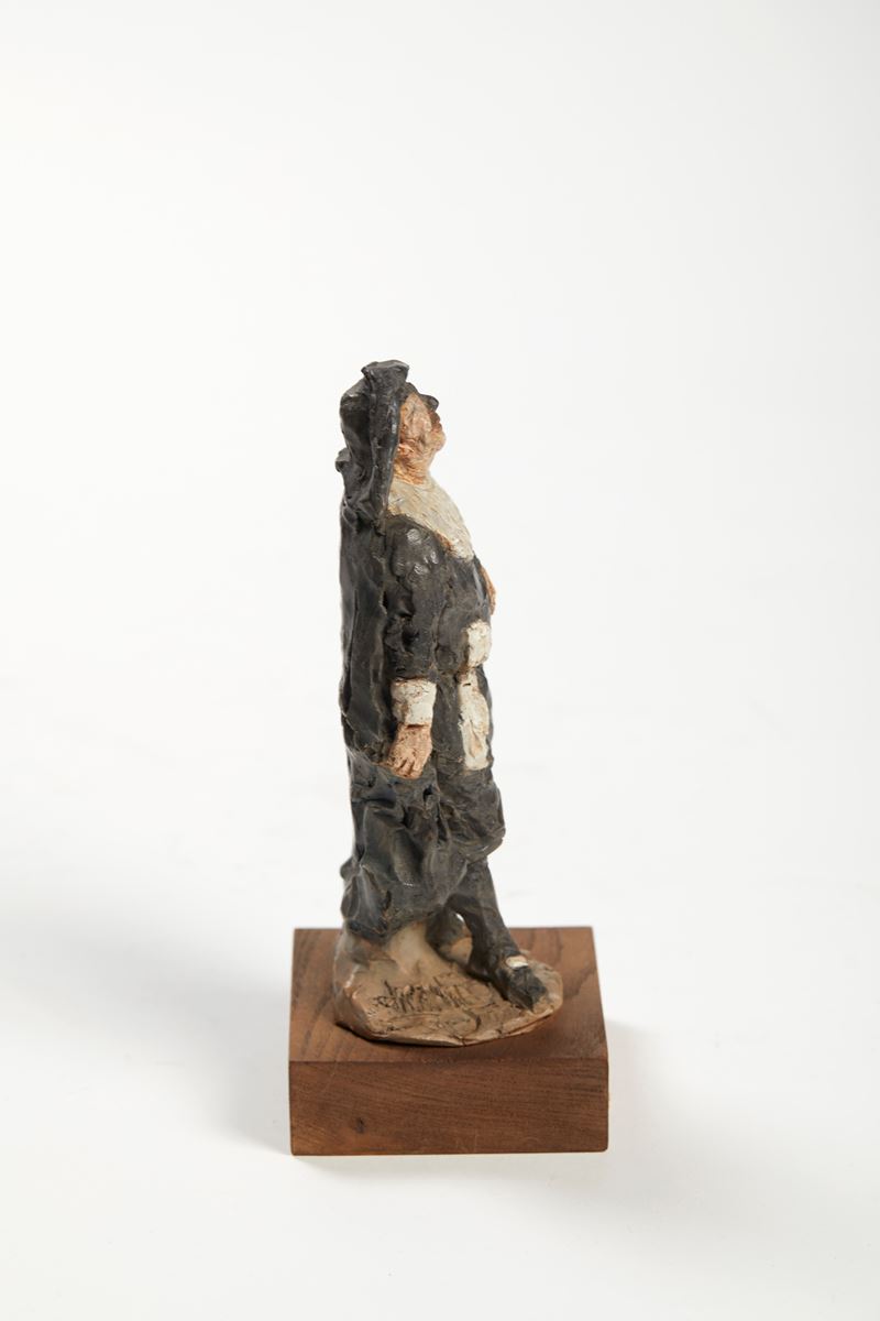 CLETO TOMBA (Castel San Pietro Terme 1898 - Bologna 1987) "Balanzone". Scultura in terracotta policroma. Cm 18x7x6. Opera firmata e siglata alla base Tomba, T. Reca dedica e firma sotto alla base lignea.