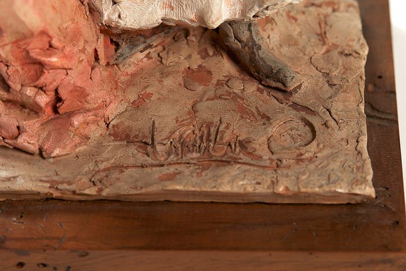 CLETO TOMBA (Castel San Pietro Terme 1898 - Bologna 1987) "Dal dottore". Scultura in terracotta policroma. Cm 20x15,5x8. Opera firmata alla base Tomba. Alla base reca marchio CT.