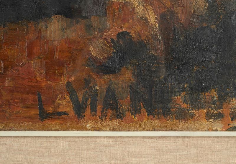 LORENZO VIANI (Viareggio 1882 - Lido di Ostia 1936) "Viareggio (Darsena)", 1930 - 1932. Olio su tela. Cm 45x64,5. Opera firmata in basso a destra L. Viani. Al retro reca etichetta di esposizione. Opera accompagnata da autentica su fotografia dell'archivio Lorenzo Viani, a firma Enrico Dei, in data 27 Settembre 2019.
