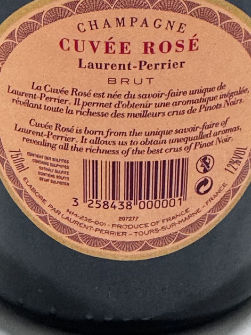 LAURENT-PERRIER Cuvèe Rosé, Champagne rosato. Reims, Francia. Invecchiato 5 anni nelle cantine. Gradazione alcolica: 12%.
