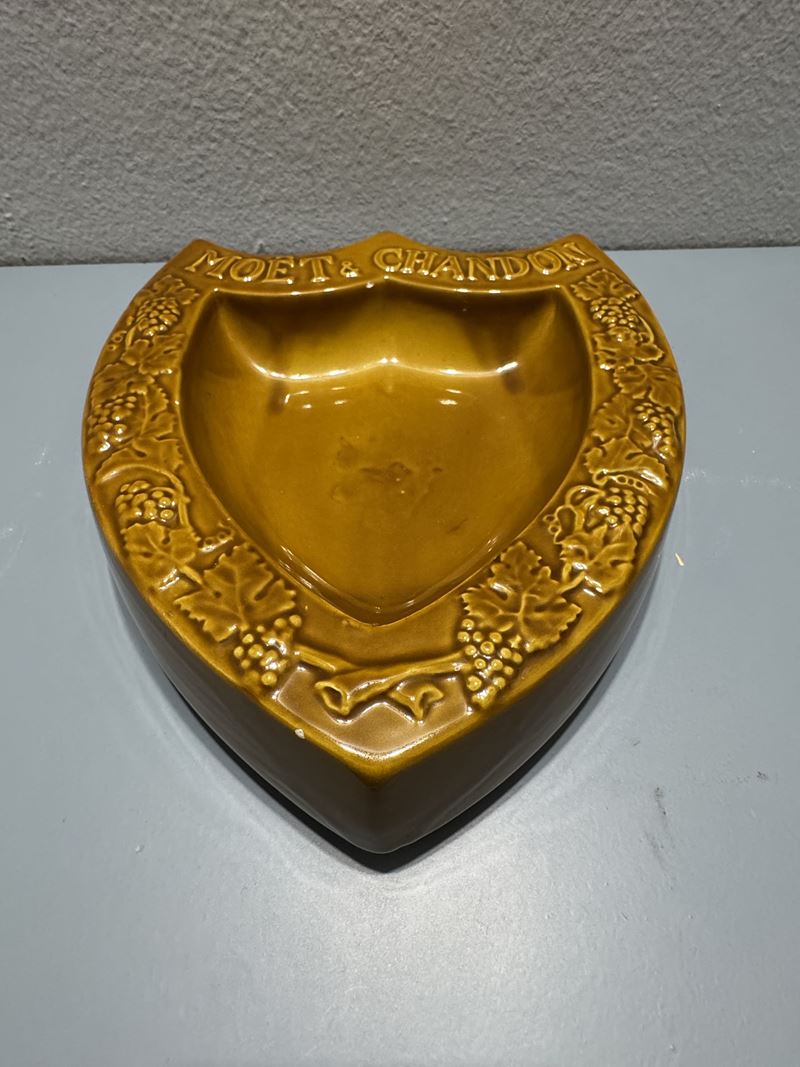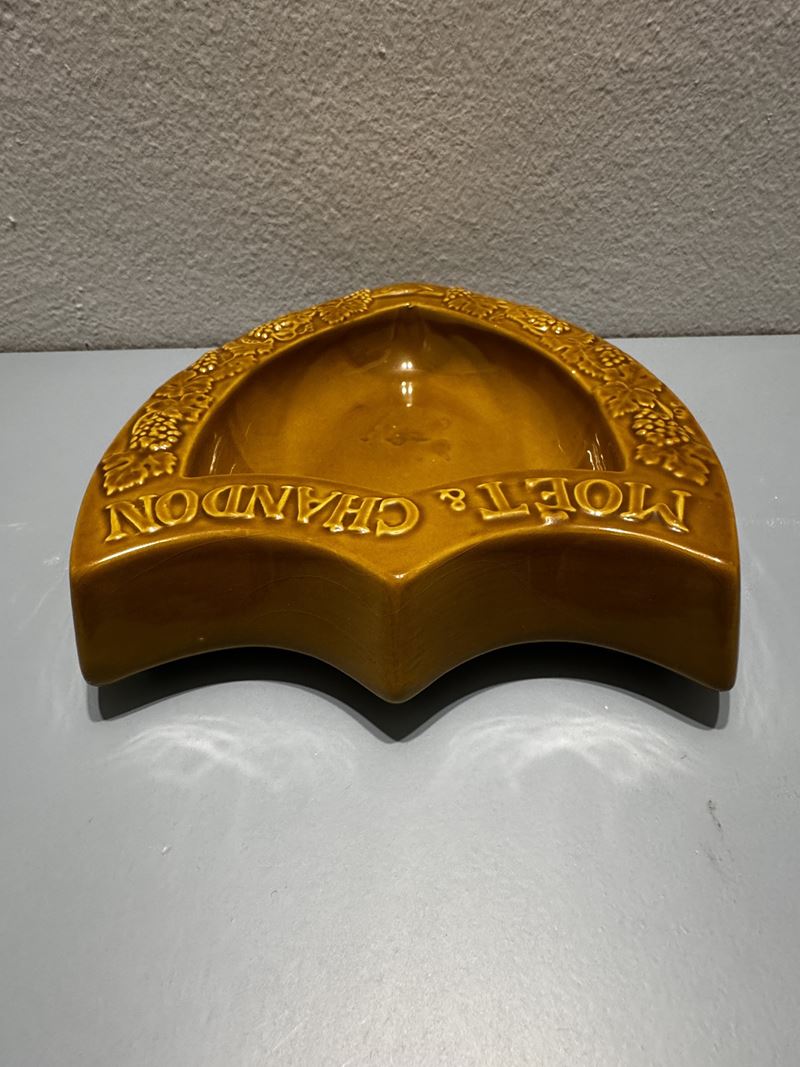 MOET CHANDON Raro Posacenere in ceramica smaltata color Senape, 1970. Cm 20x19.