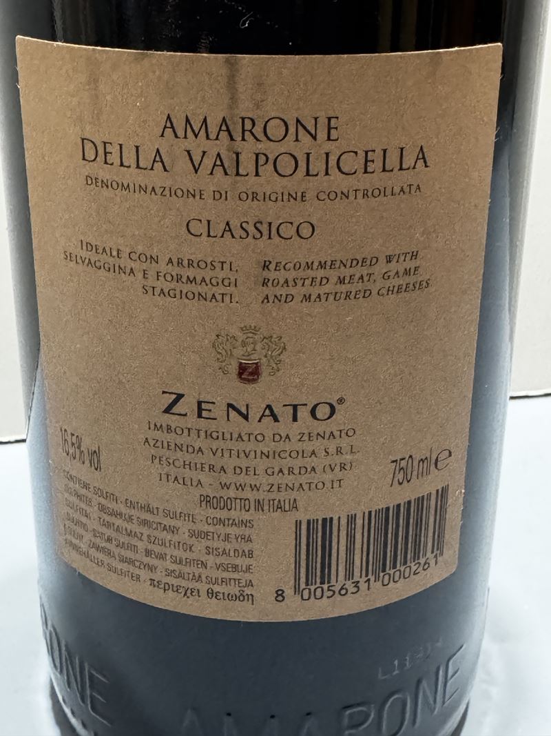 SERGIO ZENATO Amarone della Valpolicella, 2009. Peschiera del Garda, Verona, Italia. Gradazione alcolica: 16.5%.