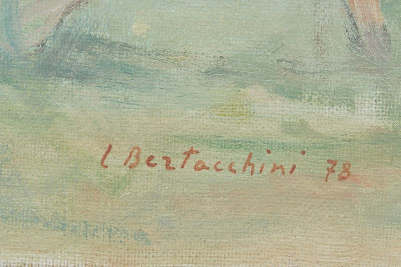 LUCIANO BERTACCHINI (Bologna, 1914 - Bologna, 2010) “Paesaggio”, 1978. Olio su tela. Cm 40,5x50,5. Opera firmata e datata in basso a sinistra L. Bertacchini ’78. Opera firmata e datata al retro Luciano Bertacchini 1978.