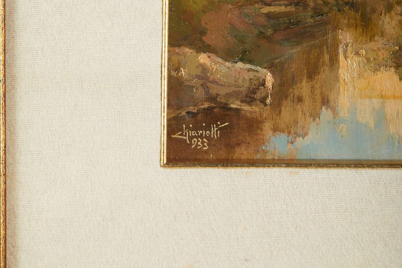 LORIS CHIARIOTTI (Comacchio 1909 - Ferrara 1977) "Vecchio Navile", 1933. Olio su tavola. Cm 25x20,5. Opera firmata e datata in basso a sinistra Chiariottii 933.