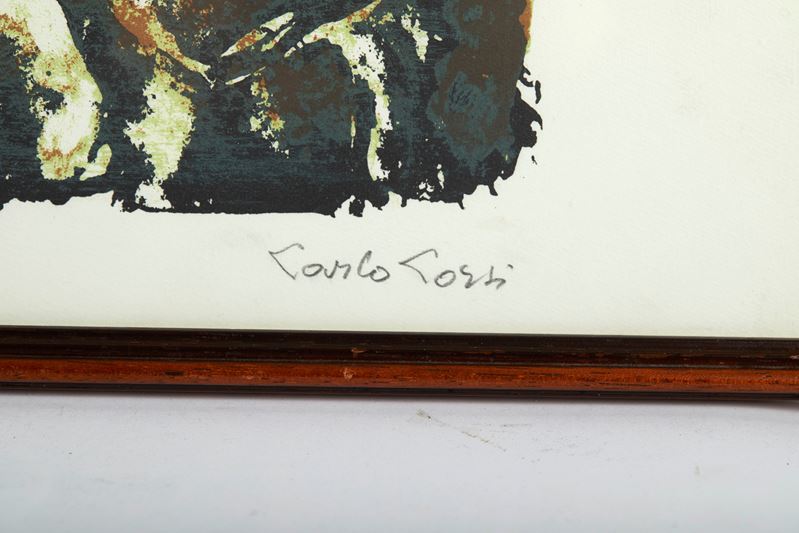 CARLO CORSI (Nizza 1879 – Bologna 1966) “Otto figure”. Cm 35x53. Opera firmata in basso a destra Carlo Corsi. Reca numeri di tiratura in basso a sinistra p.a. Al retro reca etichetta della Galleria de’ Foscherari, Bologna.