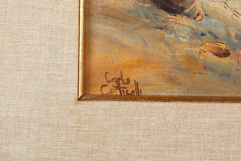 CARLO CORTICELLI (xx sec.) “Senza titolo”. Olio su faesite. Cm 23x37. Opera firmata in basso a sinistra Carlo Corticelli.