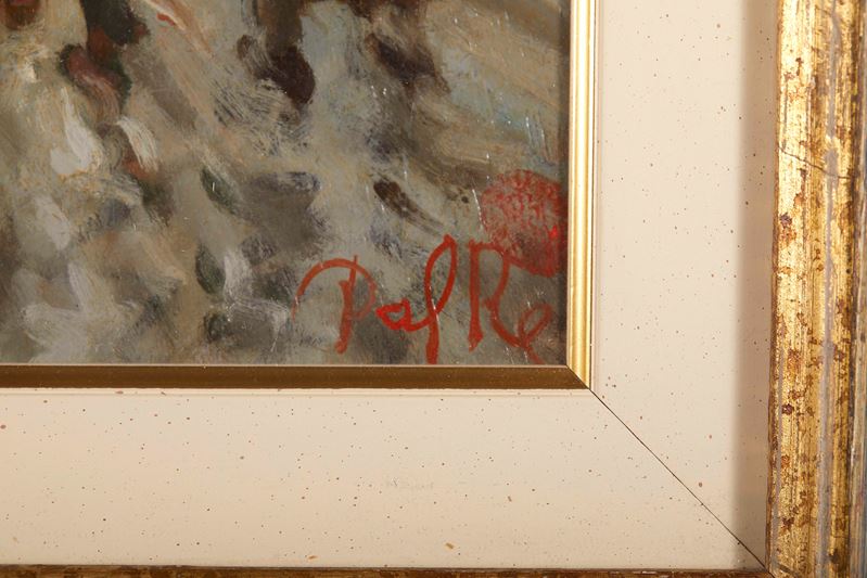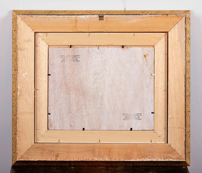 TONINO DAL RE (Imola 1924 – 2010) “Senza titolo”. Olio su tavola. Cm 24x31. Opera firmata in basso a destra. Al retro reca timbro della Galleria L’Arte e il Gioiello, Bologna.
