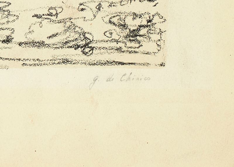 GIORGIO DE CHIRICO (Volos 1888 - Roma 1978) "La sfida in riva all'Egeo". Litografia su carta. Cm 60x46. Opera firmata in basso a destra G. de Chirico.