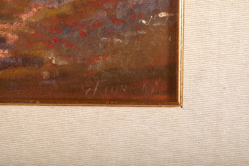 GIULIO FIORI (Bologna 1909 - 1991) “Paesaggio”, 1967. Olio su cartone telato. Cm 21x30. Opera firmata e datata in basso a destra G. Fiori 67.