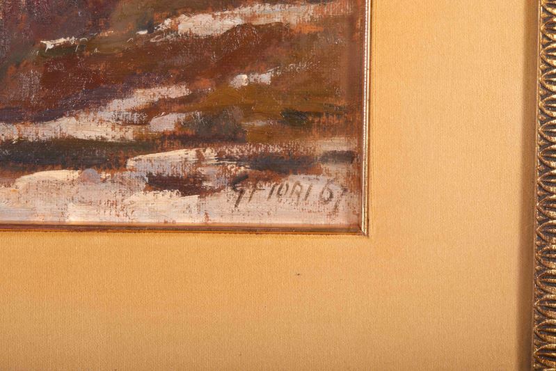 GIULIO FIORI (Bologna 1909 - 1991) “Paesaggio a Sasso Marconi”, 1967. Olio su tela. Cm 20x30. Opera firmata e datata in basso a destra G. Fiori 67.
