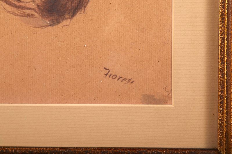 GARZIA FIORESI (Vigevano 1888 – Bologna 1968) “Volto di uomo”. Tecnica mista su carta. Cm 32,5x26. Opera firmata in basso a destra Fioresi. Al retro opera firmata G. Fioresi.