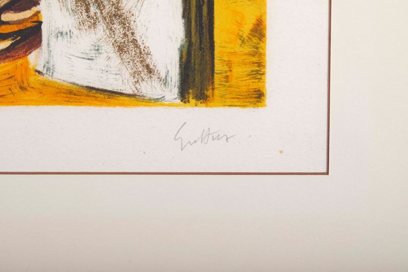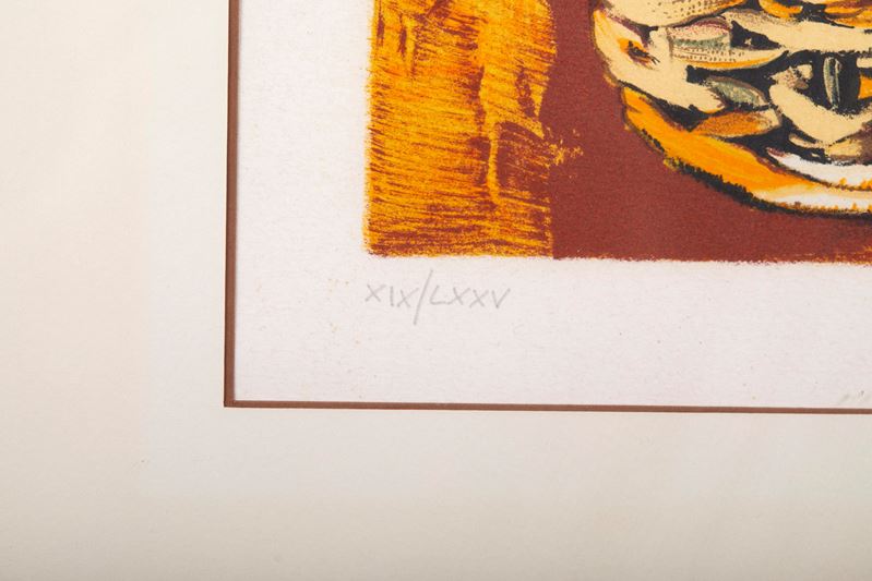 RENATO GUTTUSO (Bagheria 1911 – Roma 1987) “Cesto”. Litografia a colori su carta. Cm foglio: 65x30. Opera firmata in basso a destra Guttuso. Reca numeri di tiratura in basso a sinistra XIX/LXXV.