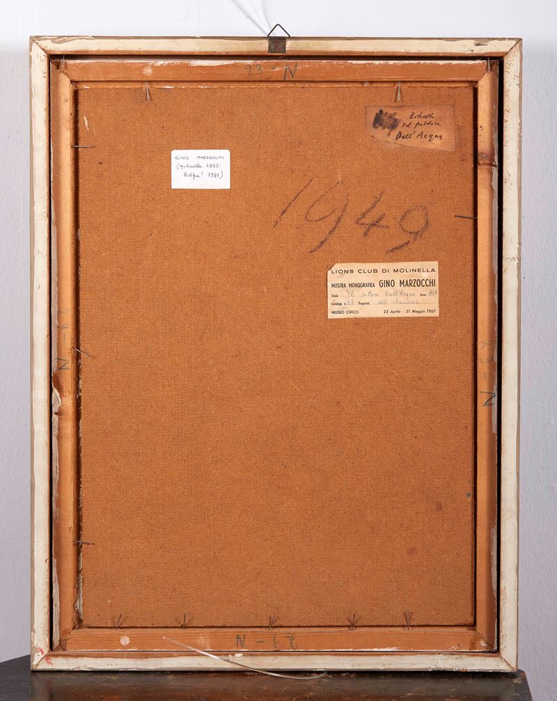 GINO MARZOCCHI (Molinella 1895 – Bologna 1981) “Ritratto del pittore dall’Acqua”, 1949. Olio su tavola. Cm 52x38. Opera firmata e datata in basso a destra Gino Marzocchi 1949. Al retro reca etichetta della Mostra Monografica a cura del Lions Club di Molin