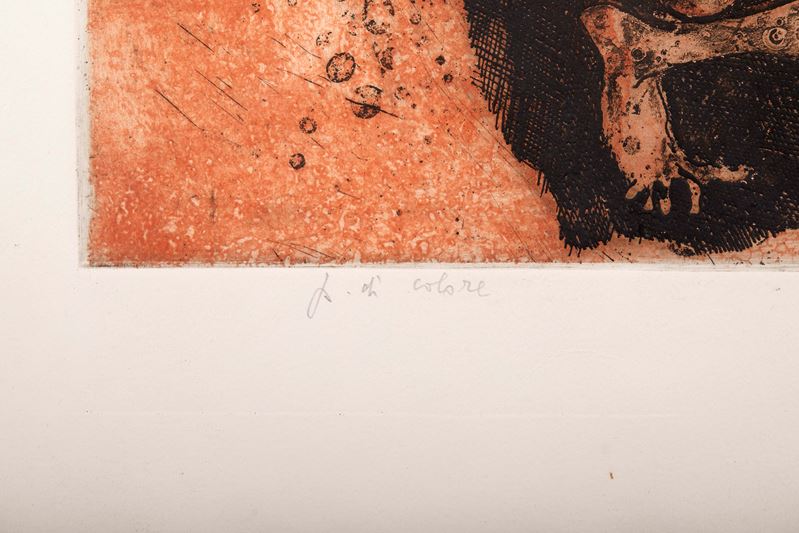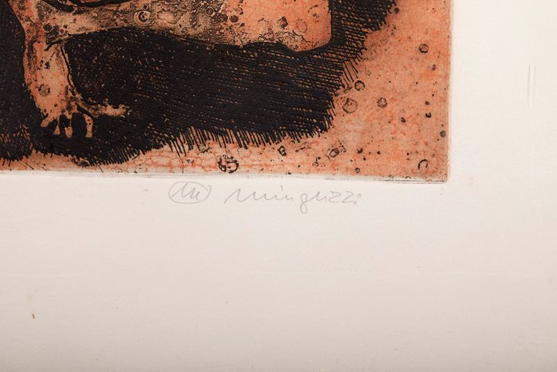 LUCIANO MINGUZZI (Bologna 1911 – Milano 2004) “Senza titolo”. Incisione e acquatinta su carta. Cm 48x33. Opera firmata in basso a destra Minguzzi. Reca in basso a sinistra prova di colore.