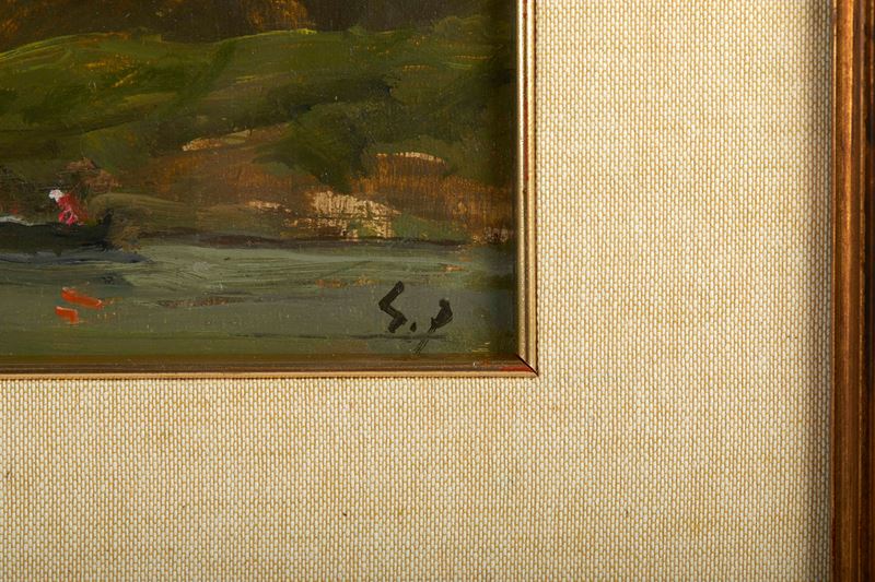 GUGLIELMO PIZZIRANI (Bologna, 1886 – 1971) "Senza titolo". Olio su tavola. Cm 15,5x30. Opera firmata in basso a sinistra G.P.