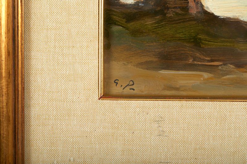 GUGLIELMO PIZZIRANI (Bologna, 1886 – 1971) "Tramonto". Olio su tavola. Cm 8,5x22. Opera firmata in basso a sinistra G. P.