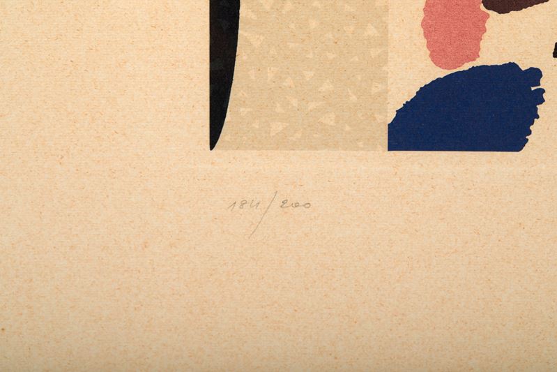 CONCETTO POZZATI (Vo’ 1935 – Bologna 2017) “Composizione”, 1971. Litografia a colori su carta. Cm 52x25. Opera firmata in basso a destra e datata Pozzati, ’71. Reca numeri di tiratura in basso a sinistra 184/200.