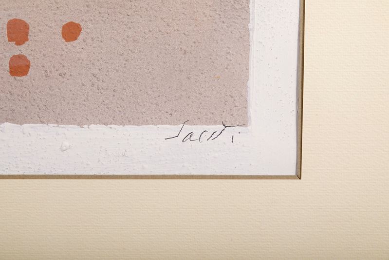 BRUNO SAETTI (Bologna 1902 – Bologna 1984) “Paesaggio con natura morta”. Litografia a colori su carta. Cm 48,5x64,5. Opera firmata in basso a destra saetti. Reca numeri di tiratura in basso a sinistra p.a. Al retro timbro della Galleria Marescalchi a firm