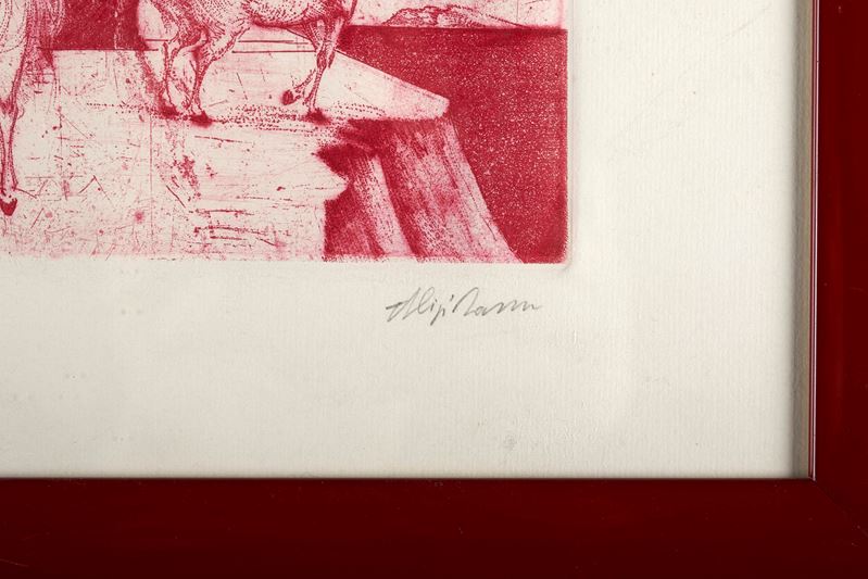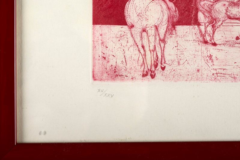 ALIGI SASSU (Milano 1912 – Pollença 2000) "Senza titolo". Incisione e acquatinta su carta. Cm 19,5x27,5. Opera firmata in basso a destra Aligi Sassu. Reca numeri di tiratura in basso a sinistra XV/XXV.