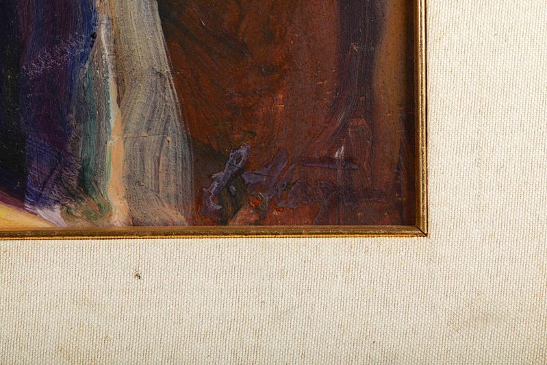 CAMILLO STAGNI (Borgo Panigale 1888 - Bologna 1972) "Senza titolo". Olio su tavola. Cm 72,5x56. Opera firmata in basso a destra C. Stagni.