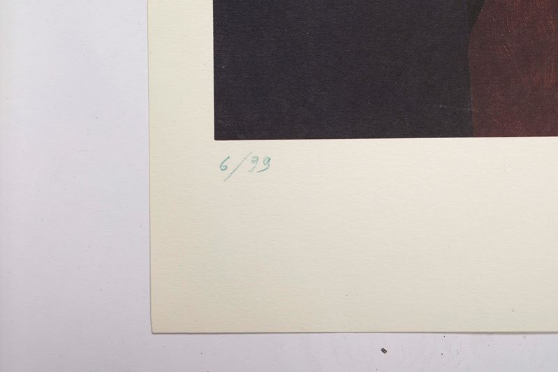 EMILIO TADINI (Milano 1927 – Milano 2002) “Senza titolo”. Cm foglio 70x50. Litografia a colori su carta. Opera firmata in basso al centro Tadini. Reca numeri di tiratura in basso a sinistra 6/99.