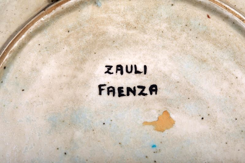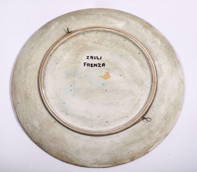 CARLO ZAULI (Faenza 1926 - 2002) Piatto in ceramica policroma. Cm diametro 30. Opera firmata al retro Zauli, Faenza.