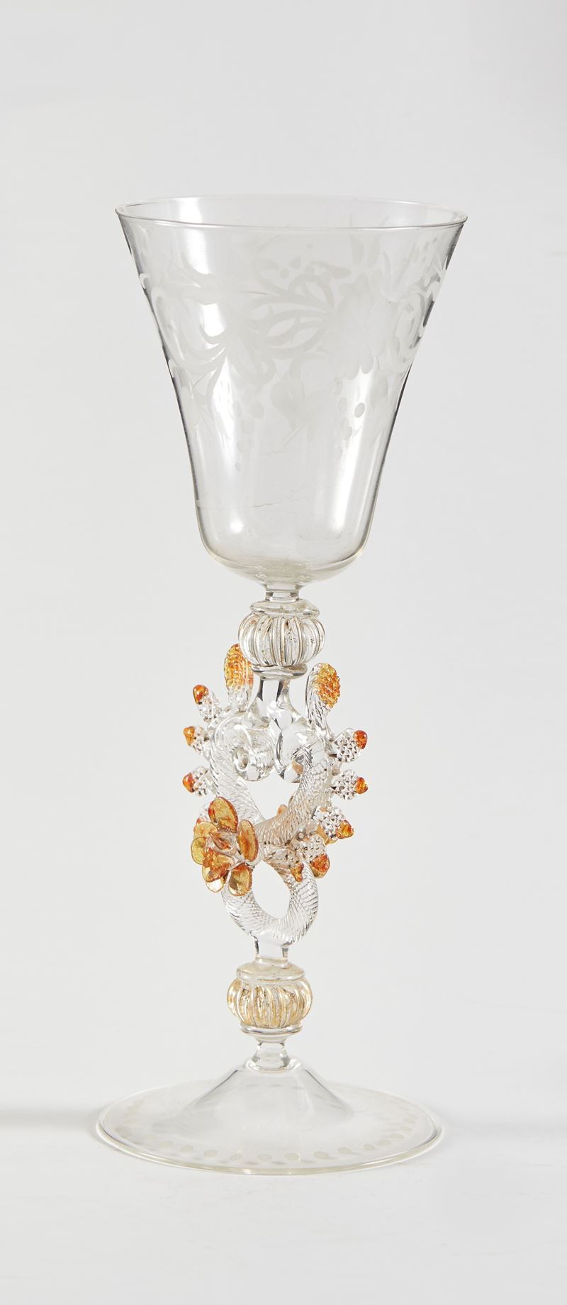 Bicchiere in vetro di Murano, fine del XIX - inizi del XX secolo. Cm h 27.