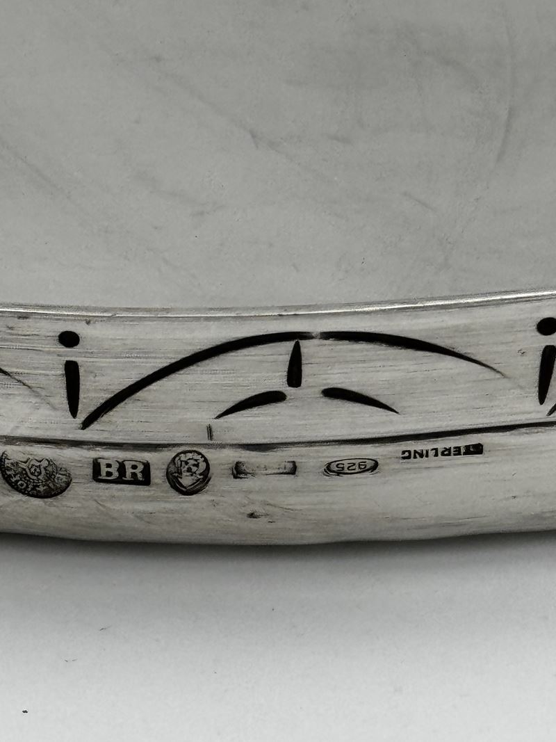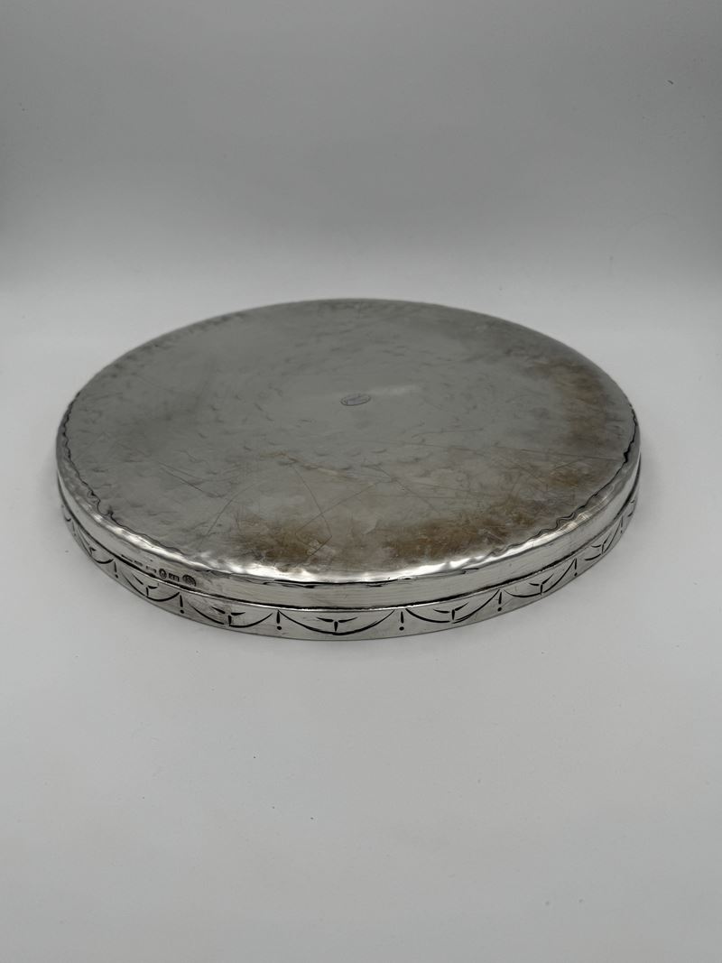 BRANDIMARTE, Firenze. Vassoio in Argento 925. XX secolo. Cm diametro 33. Reca punzoni: 925, BR, Brandimarte, Sterling. Peso: 933 gr.