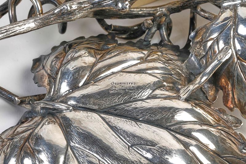 GIANMARIA BUCCELLATI Svuotatasche a foggia di foglie di vite in argento 925. Cm 25x21x2. Peso: 353 gr. Sotto la base reca punzoni: Gianmaria Buccellati, 925.