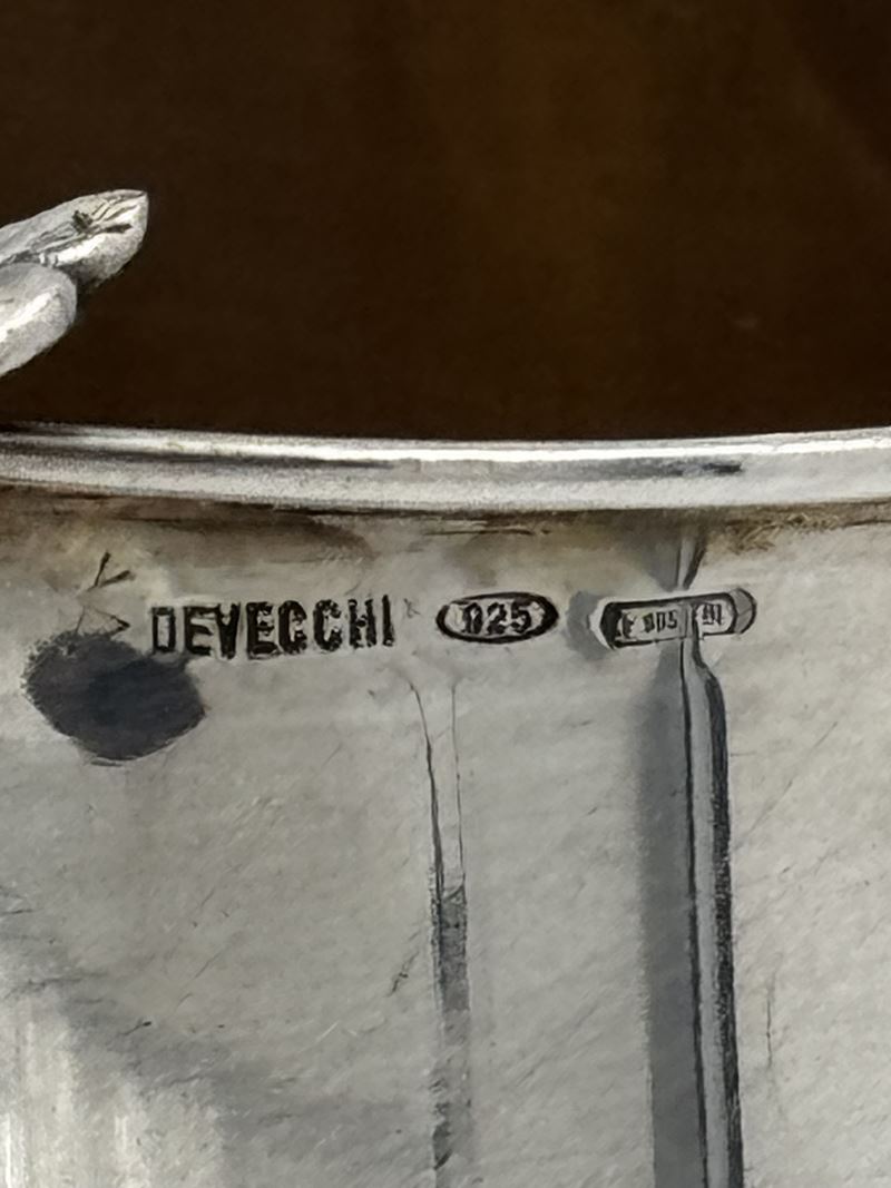 DE VECCHI Caraffa in argento 925. XX secolo, Italia. Reca punzoni: 925, De Vecchi. Cm 16x10. Peso: 591 gr.