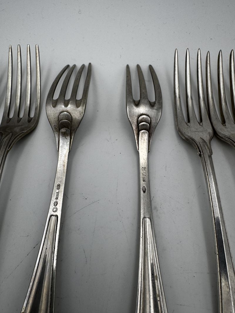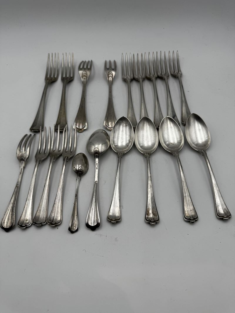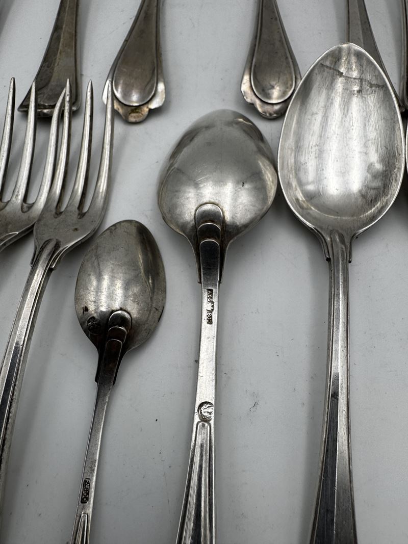 Lotto composto da forchette e cucchiai vari in argento 800. XX secolo, Italia. Recano punzoni 800. Peso: 936 gr.
