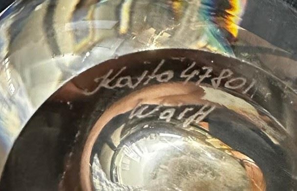 KOSTA BODA (1742) Lotto composto da due vasi Kosta Boda in vetro trasparente. L'esemplare più basso reca una colata di vetro nero sulla base. Rispettivamente cm 12x12; 24x9. Il primo vaso è firmato all'acido sotto la base Kosta Boda; il secondo è firmato e numerato all'acido sotto la base Kosta 47801.